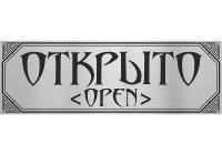 Табличка "Открыто" металлическая, silver. в стиле модерн. Наша компания производит таблички на заказ на тонированном листовом алюминии с клеевым слоем, благодаря которому вы сможете приклеить ваши домовые таблички на любую поверхность. При разработке табличек серии “Модерн” использованы классические орнаменты и шрифты Art-Nuovo, придающие нашим табличкам особую выразительность, изящество и стиль.