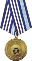 Памятная медаль — заказ Нахимовского военно-морского училища, приуроченный к 75-летию учебного заведения. Медаль изготовлена на пятиугольной колодке с шелковой муаровой лентой в цветах военно-морского флота Российской Федерации и флага Нахимовского училища. Лента имеет пять синих, три белых и одну голубую полосы. Материал — яркая блестящая латунь. Также на аверсе медали на эмблеме Нахимовского училища применена заливка черной эмалью. Изображение на аверсе представляет собой герб Училища с вензелем «Н», якорем, а также с мечом и гусиным пером крест-накрест. В нижней части медали на ленте помещена дата: «1944 — 75 — 2019». Чуть выше — круговая надпись: «Нахимовское военно-морское училище». Юбилейная медаль 75 лет НВМУ поставляется в комплекте с удостоверением и пластиковым футляром.В компании «Фабрика Наград» вы можете заказать юбилейную медаль из высококачественных материалов с любым дизайном, приуроченную к любой торжественной дате, а также ордена, значки, в том числе значок-фрачник (ссылка: Знак фрачник СПВИ) и другую наградную продукцию.