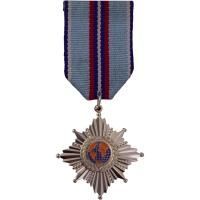 Медаль международной полицейской ассоциации российская II степени изготовлена из нейзильбера с анодированием в виде восьмиконечной звезды с закругленными концами. В центре звезды эмалированный медальон с изображением земного шара в обрамлении лаврового венка. Представленная на нашем сайте медаль международной полицейской ассоциации II степени крепится к пятиугольной колодке западного образца. Муаровая лента голубая с набором красных, синих и светло-серых полос.Для покупки товара в нашем интернет-магазине выберите понравившийся товар и добавьте его в корзину. Далее перейдите в Корзину и нажмите на «Оформить заказ» или «Быстрый заказ».
