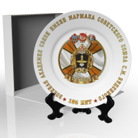 В честь 100-летия Академии связи мы изготовили сувенирные тарелки с видами здания Академии, а также с изображением флага войск связи, с гербом Академии и надписью: «Военная Академия связи им. маршала Советского союза С. М. Буденного: 1919 — 100 —2019».