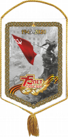 Вымпел, изготовление которого ПК «Фабрика Наград» приурочила к памятной дате — 75-летию Великой победы, напечатан на ткани методом термосублимационного трансфера и оторочен золотистым витым шелковым шнуром. В его оформлении использована фотография, запечатлевшая ключевое событие победной весны. На этом снимке, сделанном 8 мая 1945 г., рядовые Егоров и Кантария водружают над берлинским Рейхстагом красное знамя Победы. В верхней части вымпела дата: 1945-2020; в нижней надпись: 75 лет Победы.