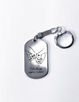 - Брелок сделан в форме стандартного армейского жетона из нержавеющей стали с матовым покрытием, цепочкой и кольцом для ключей.